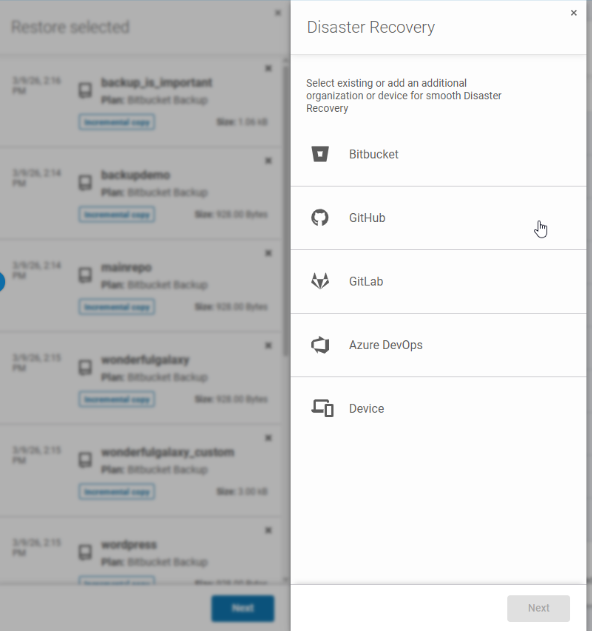 - Cross-over recovery of a third-party backup tool, like GitProtect.io offers. In this case, you can simply back up your Bitbucket data and restore it to GitHub (or GitLab if needed).