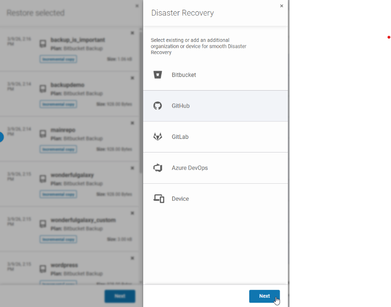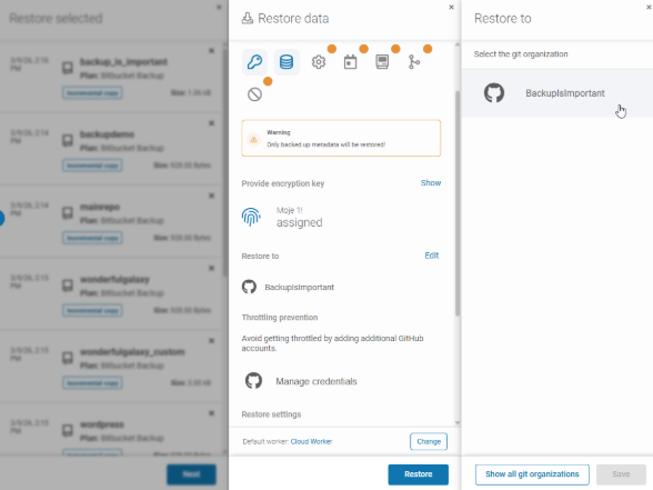 In short, you can make a copy of your Bitbucket repositories (plus metadata), then restore them to a new or existing GitHub organization – as the data recovery destination. And basically, that’s the whole process.