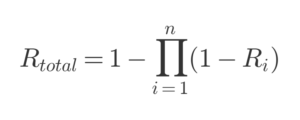 Rtotal = 1 – (1 – 0.0005)^2 ≈ 0.99999975
