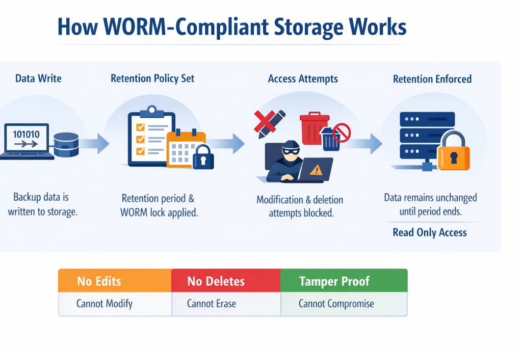 From a technical perspective, WORM storage typically works by assigning a desired object or record a retention period at the time it is written. Now, until that period expires, the storage system itself rejects any attempt to modify or remove the data, regardless of intent or access level the user has.